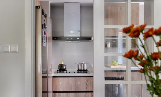 厨房台面的高低度根据平时下厨最多的那个人的习惯定制,灶台比常规的低一点,操作比常规高一些,从实际操作上更人性化一些。